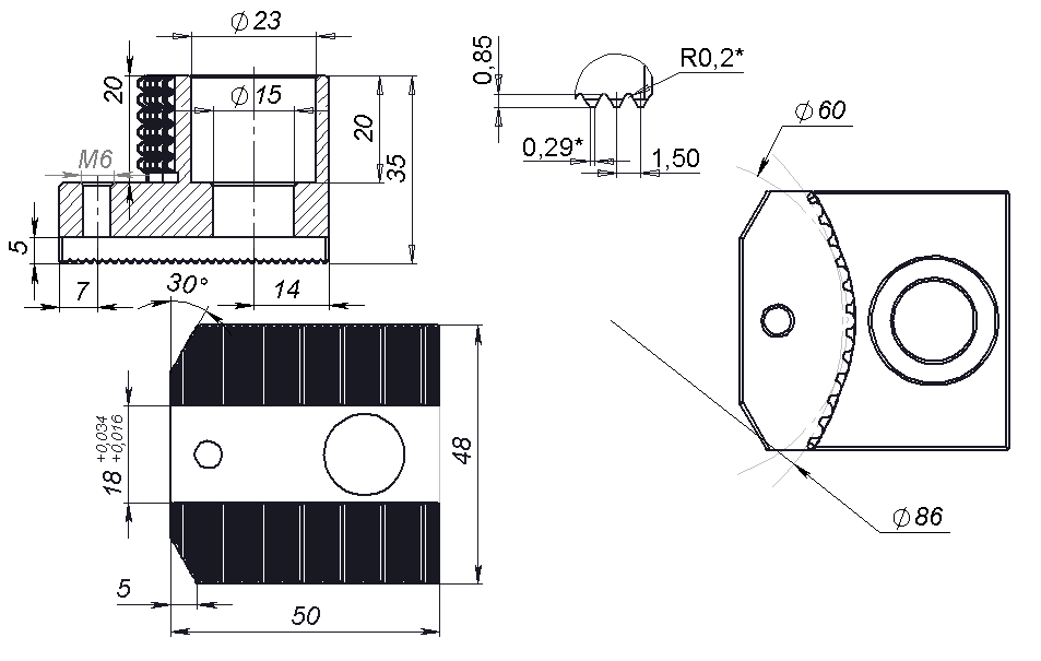 | Шаг зуба (N) | 1.5х60⁰ |