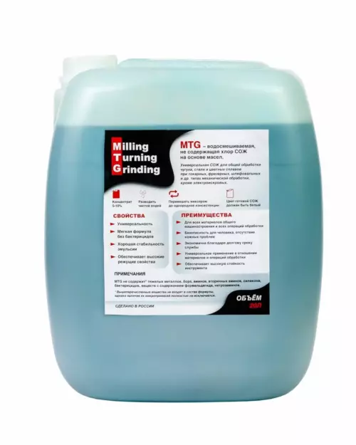 Для примера: 5 литров концентрата добавляется в 100 литров воды и тщательно перемешивается до однородной консистенции. Получаем 5% смазочно-охлаждающую жидкость. Готовая эмульсия должна быть молочного цвета.